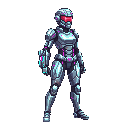 "wearing full chrome battle armour"
